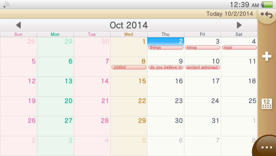 The Calendar app’s LiveArea now supports the next six tagged events, so you can get a summary of what’s upcoming before opening the app. You can link colours to specific days. Say, I want every Monday and Thursday in red because that’s when I go shopping.