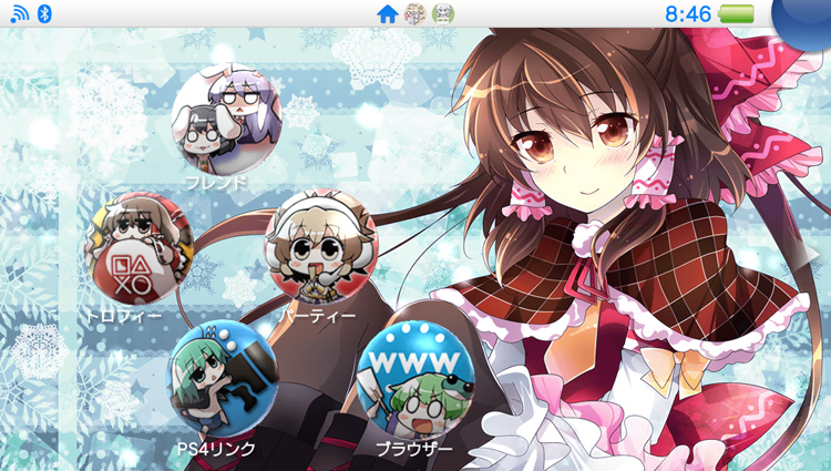 To celebrate this, two PS Vita custom theme sets were released on the PlayStation Store. The first (below, right) is a winter set based on the world of Gensokyo, the setting of the Touhou Project series. It features eight different background images, custom icons and background music. Additional themes based on Gensokyo will be released during the other seasons.