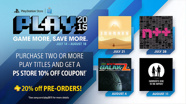 Next week kicks off the annual PlayStation Store PLAY promotion. This year PLAY features Journey, N++, GALAK-Z, and Everybody’s Gone to the Rapture.